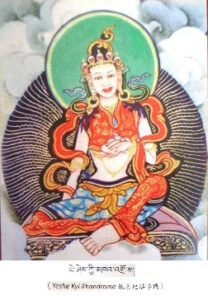 With regard to the Nairatmya practice, like Hevajra, it relies on the two tantras of the Hevajra cycle, the Hevajratantra and the Vajrapanjara, with more emphasis on the latter. Nairatmya was Ngok Chödor (Marpa’s disciple) main yidam, and it is said that he had a vision of her.